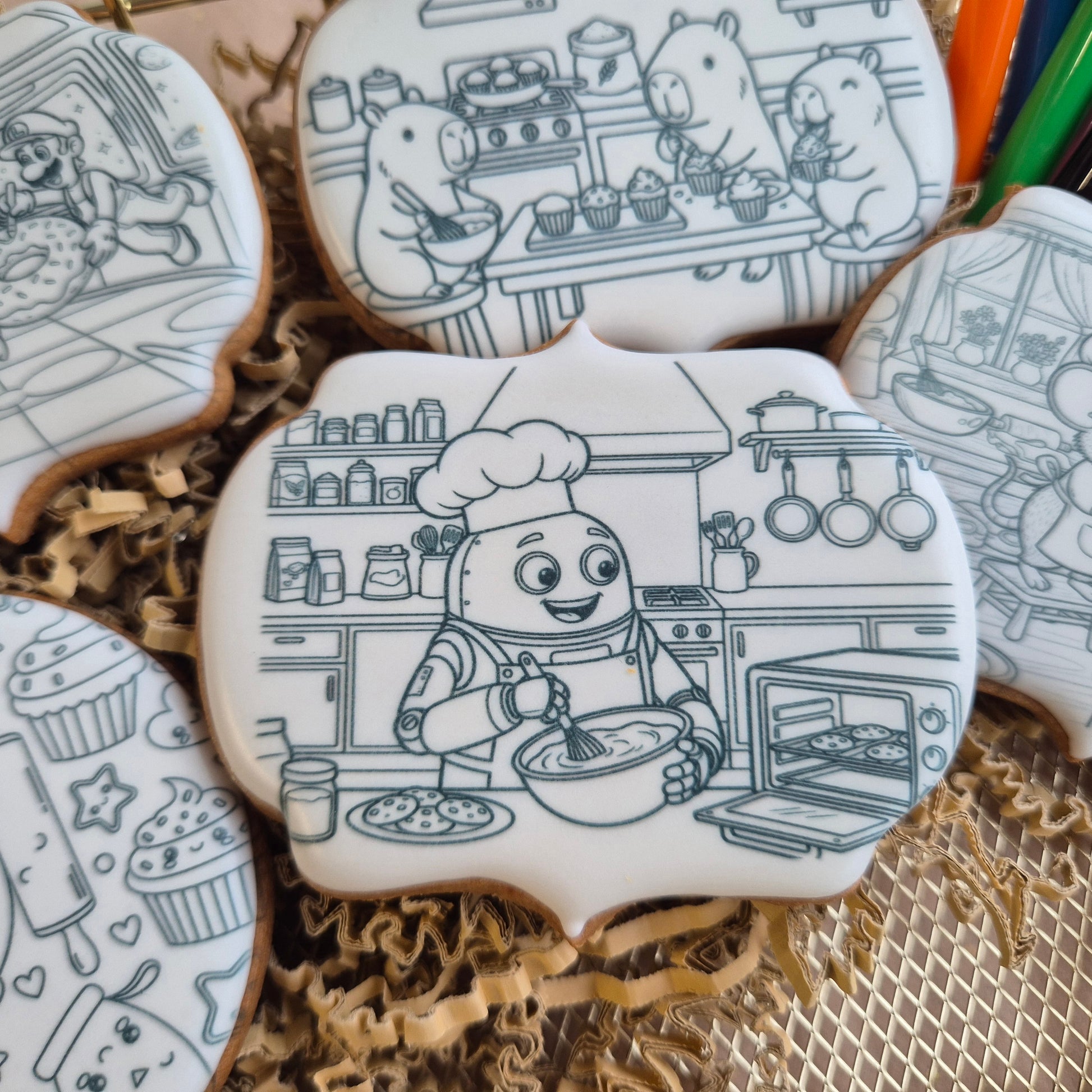 Let op de stiften die erbij zitten zijn speciale stiften met eetbare inkt! Gebruik NOOIT normale stiften!